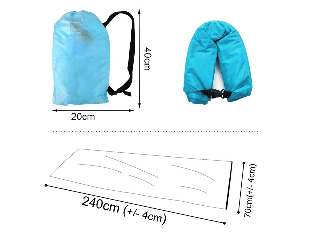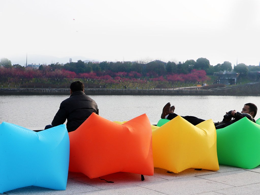 El saco de aire inflable está diseñado para una máxima relajación en cualquier lugar: junto al agua, en el agua o en la nieve. ¡En un minuto puedes prepararlo para sentarte! Es compacto, ligero, cabe en tu mochila y pesa aproximadamente 850 gramos. 9 colores para elegir. ¡Se infla rápidamente y se pliega fácilmente!