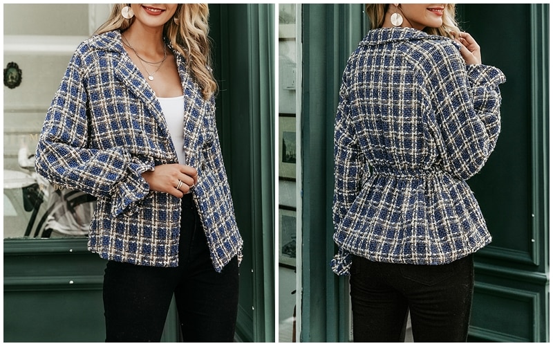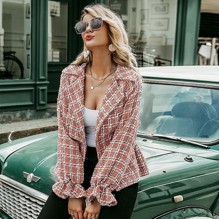 Blazer de cuadros para mujer con volantes en las mangas Megan