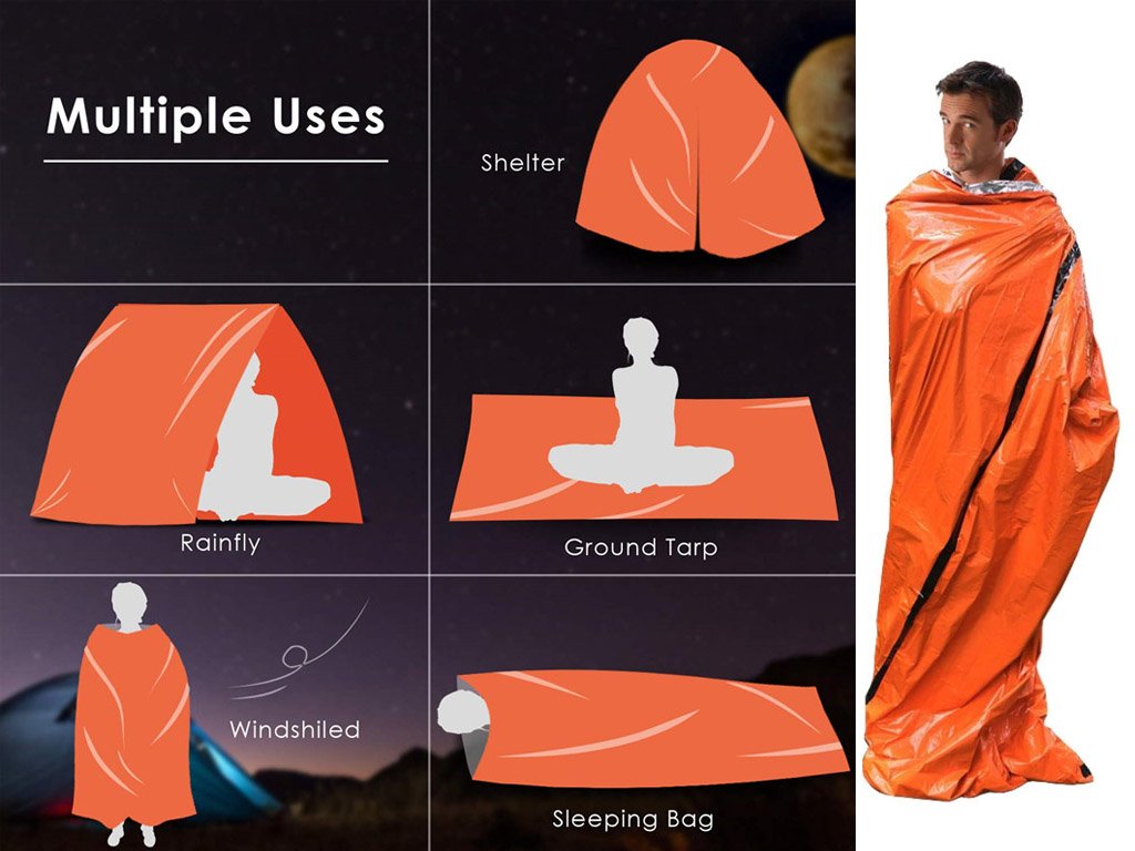 Uso multifuncional como manta de emergencia, poncho, refugio de emergencia y más. ¡Prepárate para todas las situaciones difíciles en la naturaleza! ¡Te ayudará a mantener hasta el 90% del calor!