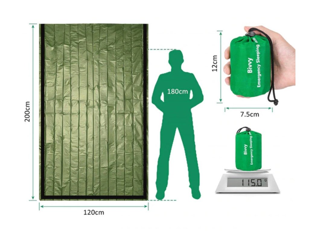 La manta de emergencia / bivac de material mylar es ideal para acampar y excursiones en la naturaleza. Es adecuada para acampadas de emergencia y se convertirá en una parte integral de tu kit de supervivencia. Puede proteger contra la lluvia, el frío y el calor. Durante los días lluviosos, también puedes usarla como base para la tienda.