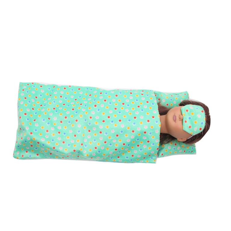 Saco de dormir con almohada para muñecas con un bonito diseño.