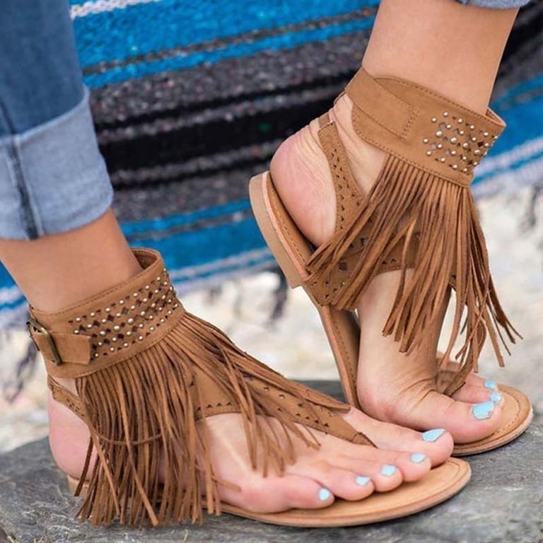Elegantes sandalias de mujer con flecos, perfectas para salir a la ciudad o para una excursión. Prueba esta super novedad para la temporada 2025.