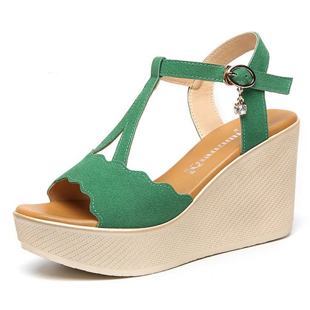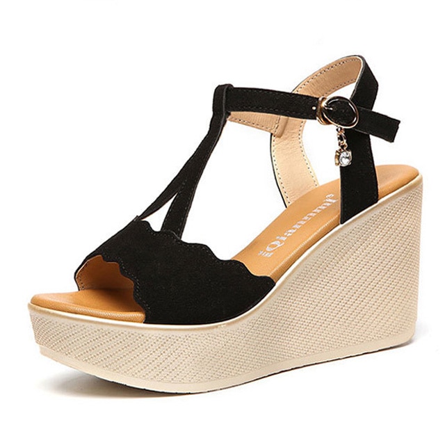 Sandalias de mujer con tacón de cuña y colgante en la correa