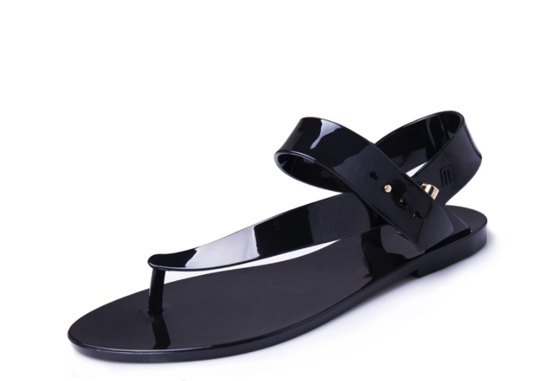 Sandalias de mujer de goma brillantes y bajas con suela plana.