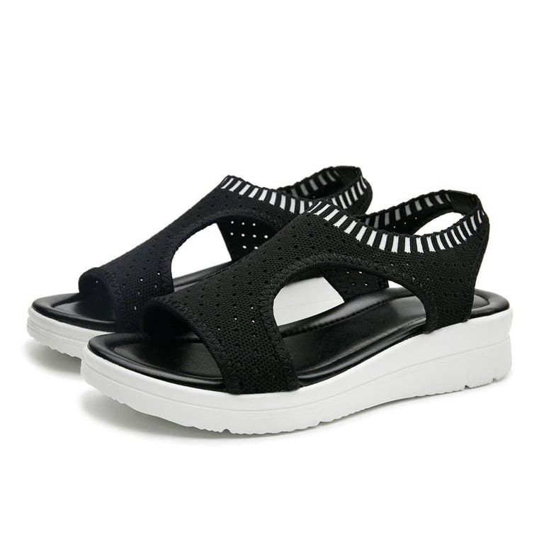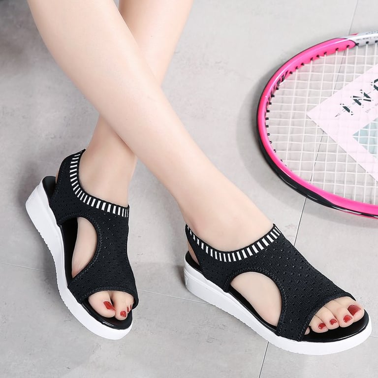 Sandalias de mujer elegantes con plataforma alta y suela perfilada. Estilo deportivo. Amplias correas cómodas con perforaciones decorativas. Disponibles en varias opciones de color.