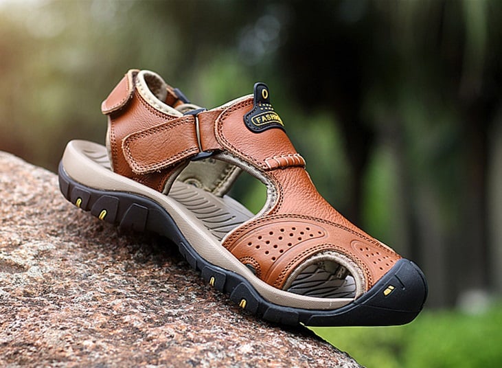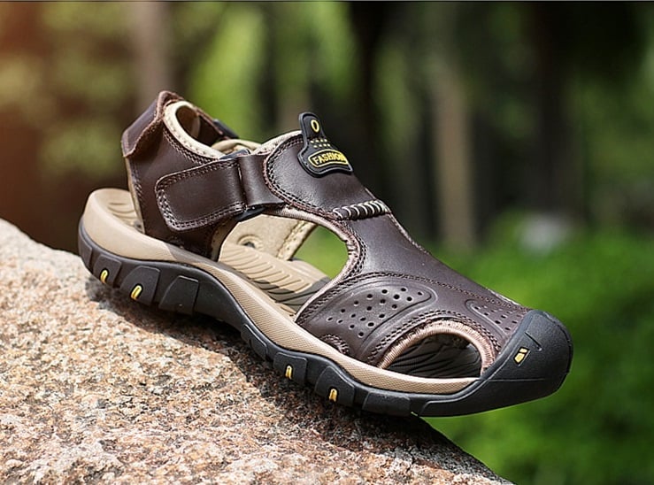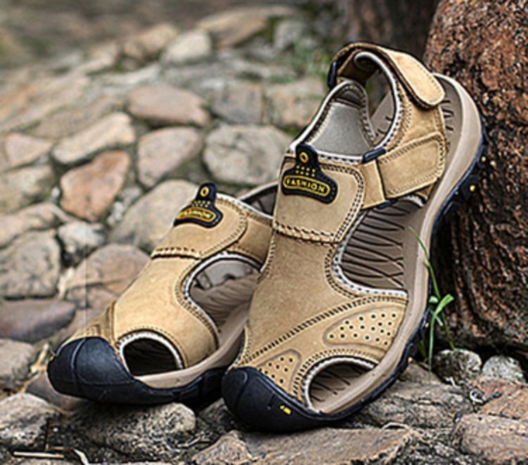 Seguro que te encantarán las sandalias de senderismo para hombre de cuero con cierre de velcro. El material es muy agradable al caminar.