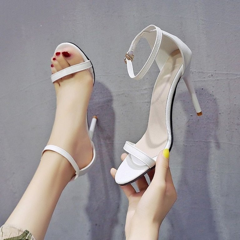 Sandalias de un solo color para mujer con tacón delgado y tiras finas.