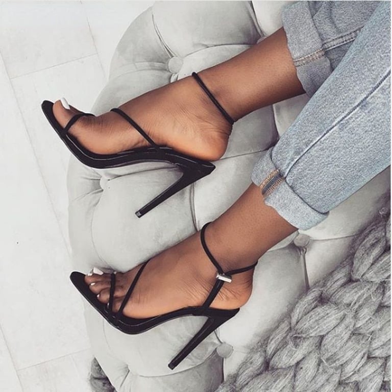 Sandalias de mujer de un solo color con tacón alto y estrecho.