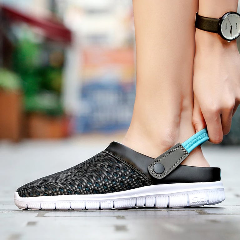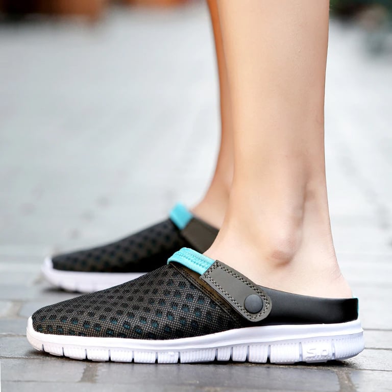 Zapatos elegantes para paseos cómodos por la playa o en la ciudad. Se ponen fácilmente y, gracias a la correa de protección, no se caen. Debido a las tallas más pequeñas, también son adecuados para mujeres.