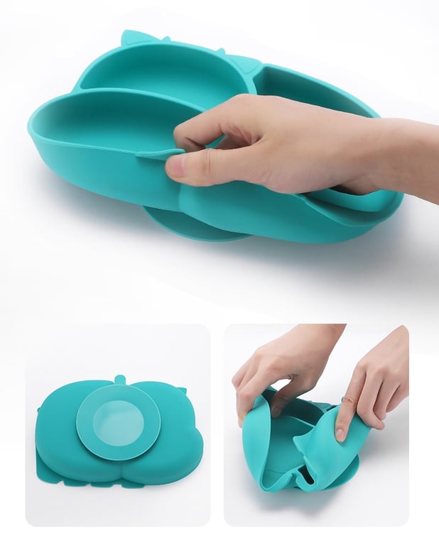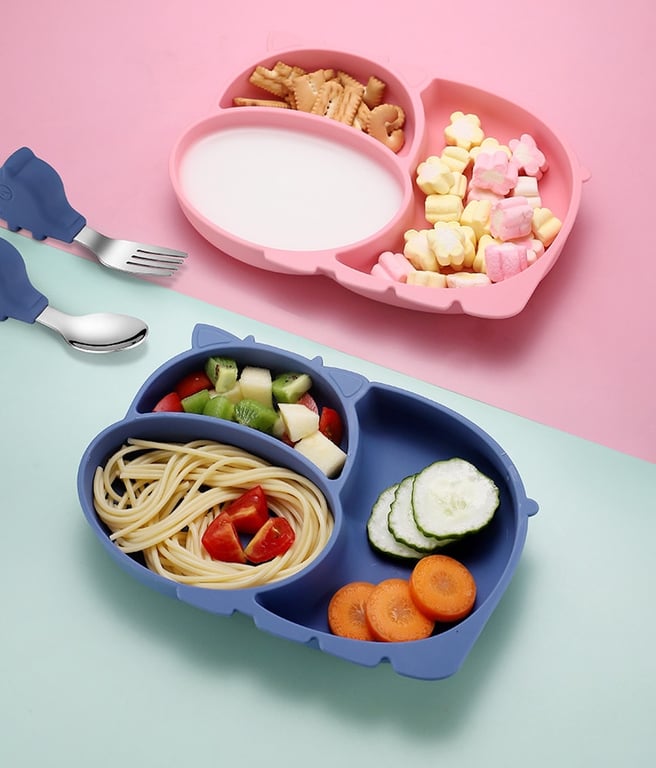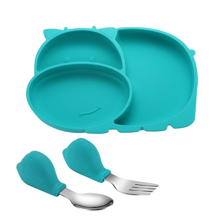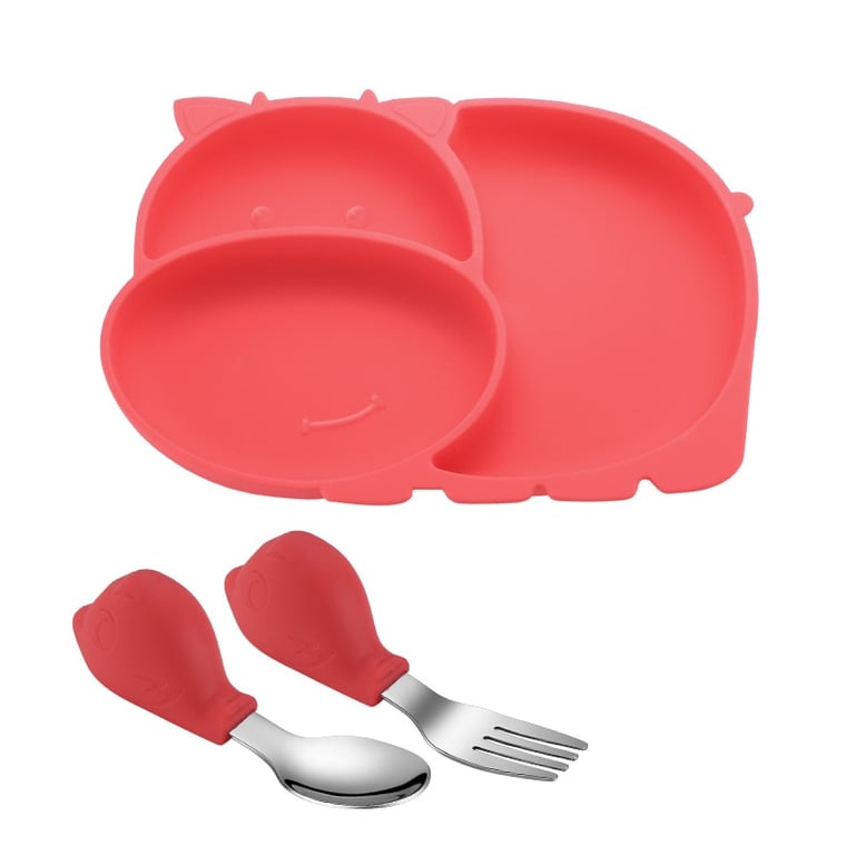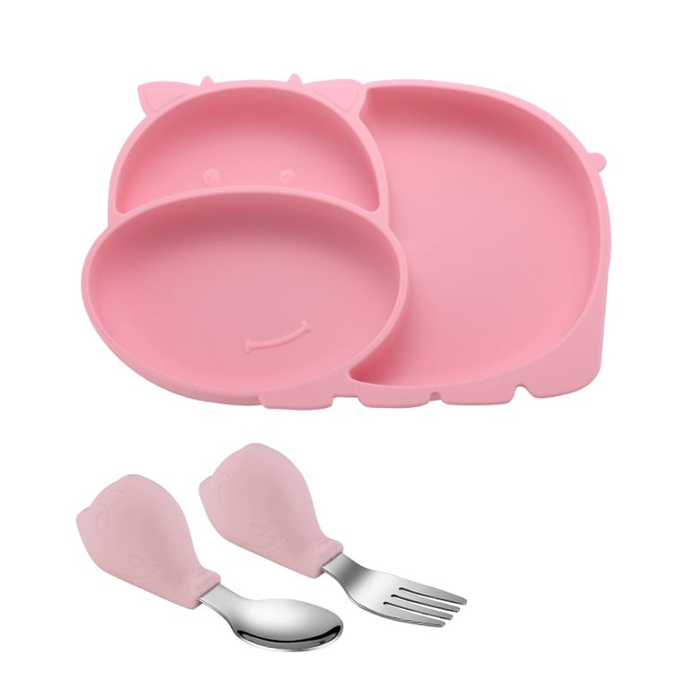 Set de alimentación de silicona para niños en forma de vaca – plato + cubiertos