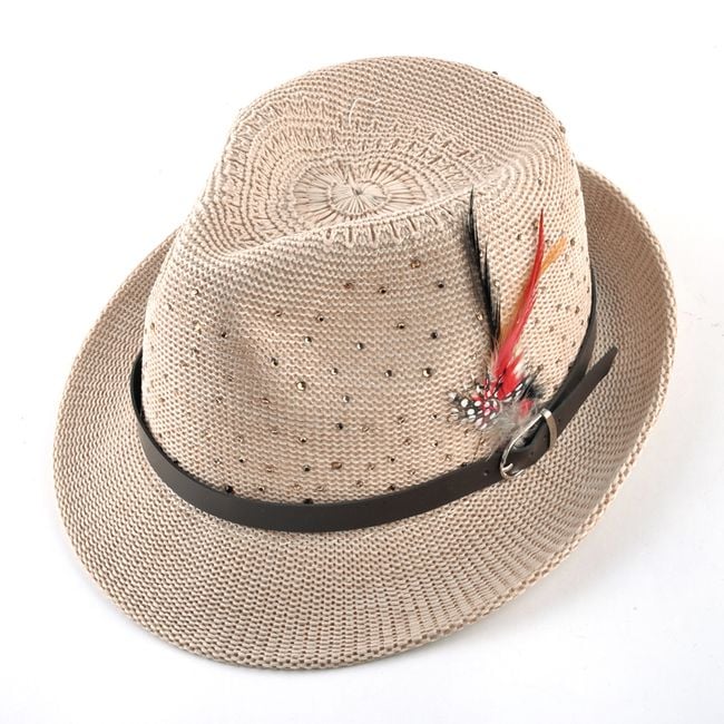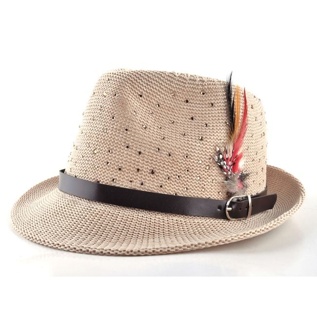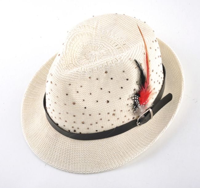¡El sombrero con cinta y plumas será una bonita pieza para tus outfits! El sombrero está adornado con más piedras. Puedes elegir entre 7 colores.