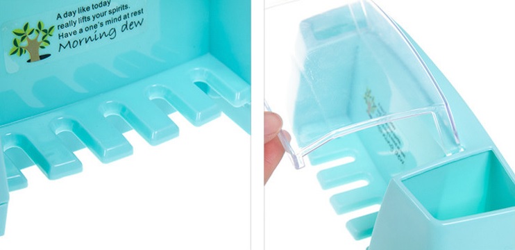 El soporte multifuncional para el baño será su asistente. En el soporte caben hasta 5 cepillos de dientes, que el cubierto transparente protegerá del polvo.