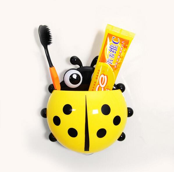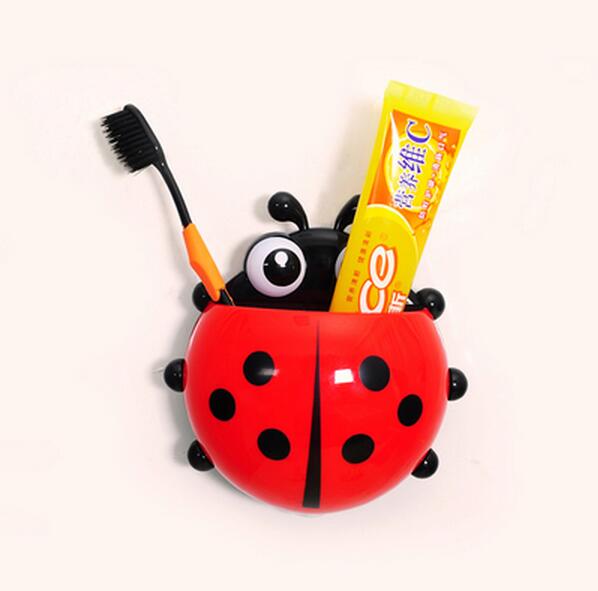 Soporte para cepillos de dientes en forma de mariquita en varios colores.