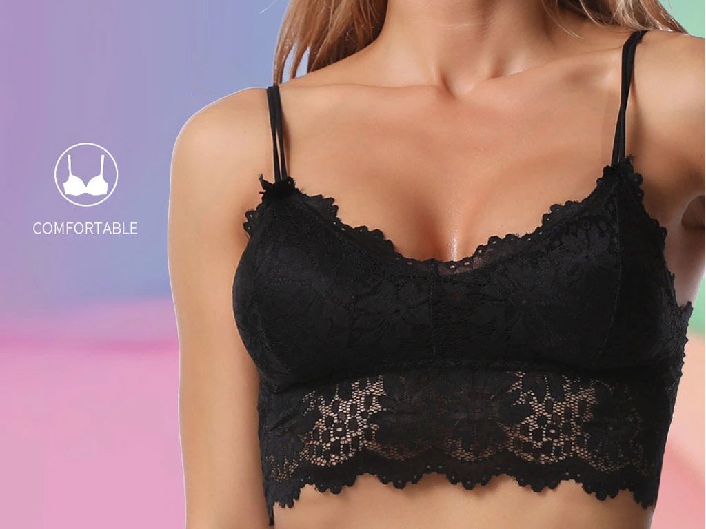 Un sujetador de encaje elegante con efecto push-up está hecho de un material agradable, con una banda lateral alta y tirantes dobles ajustables. Está maravillosamente adornado con patrones florales. Elija entre 4 colores y 3 tamaños.