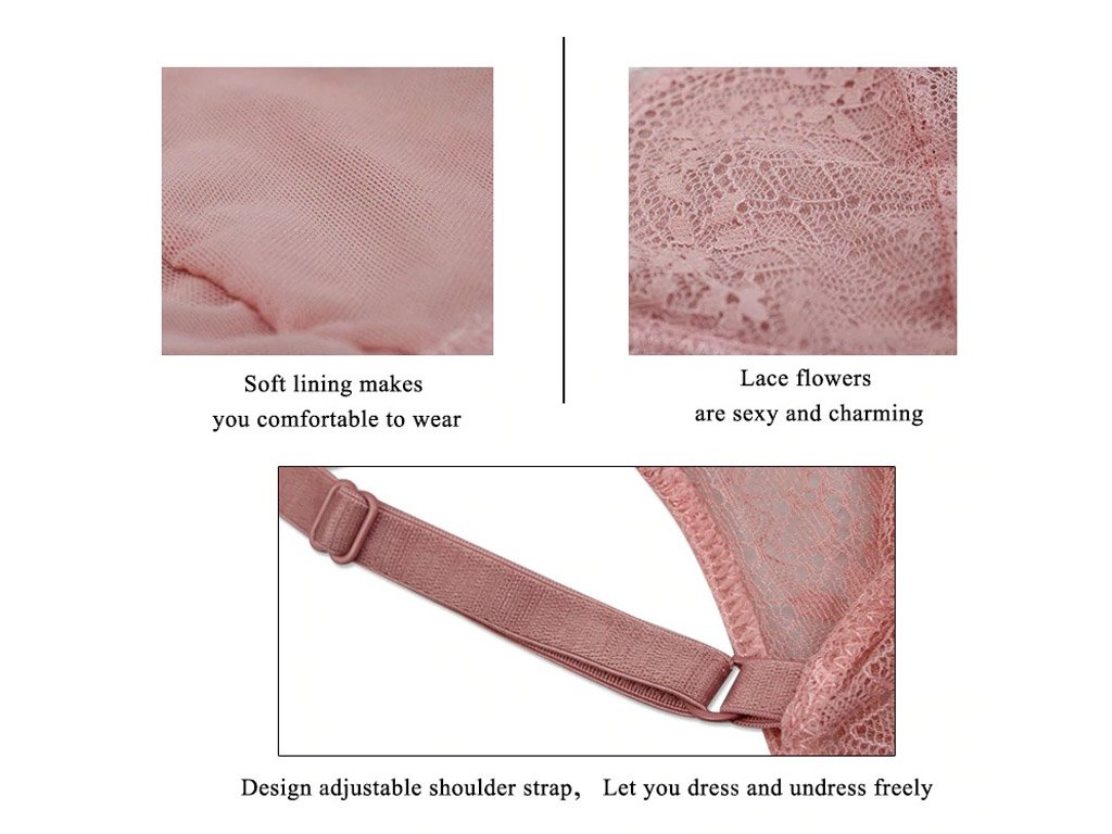 Elegante sujetador de encaje completo DeMonarchia hecho de un material agradable, con cierre frontal y efecto Push Up. Tirantes ajustables, cierre frontal y hermoso diseño de encaje. Elija entre muchas tallas.