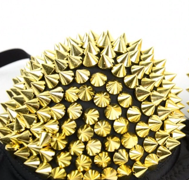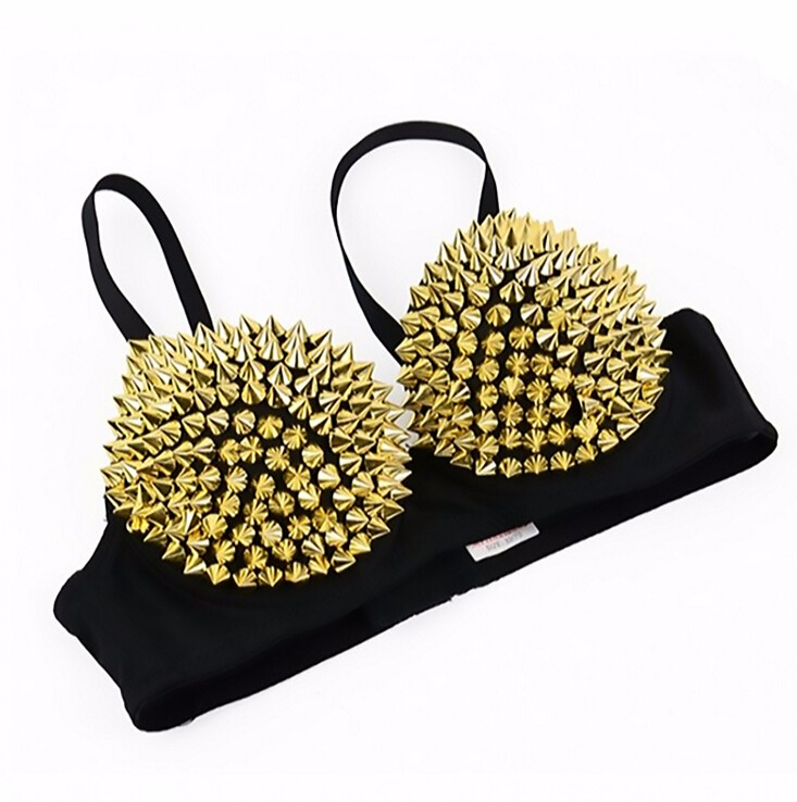 El sujetador push-up original decorado con púas metálicas es perfecto como complemento para un disfraz.