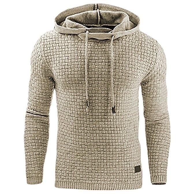 Sudadera atractiva de material de algodón con una textura más gruesa. La práctica capucha cuenta con un ajuste de circunferencia mediante un cordón. Los extremos de cuero sintético en el cordón y el cuadrado de cuero sintético cosido en el lado son detalles que llaman la atención.