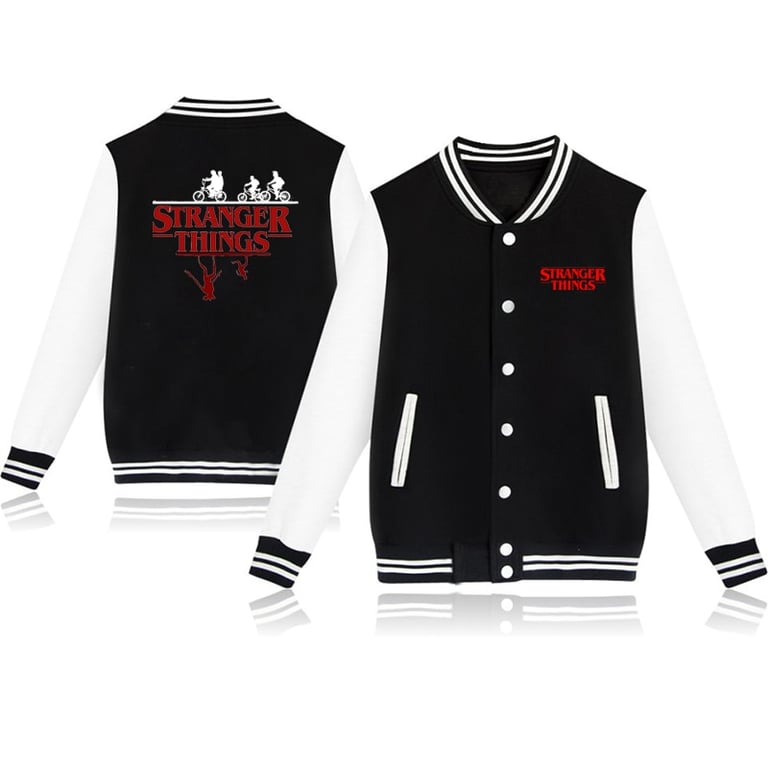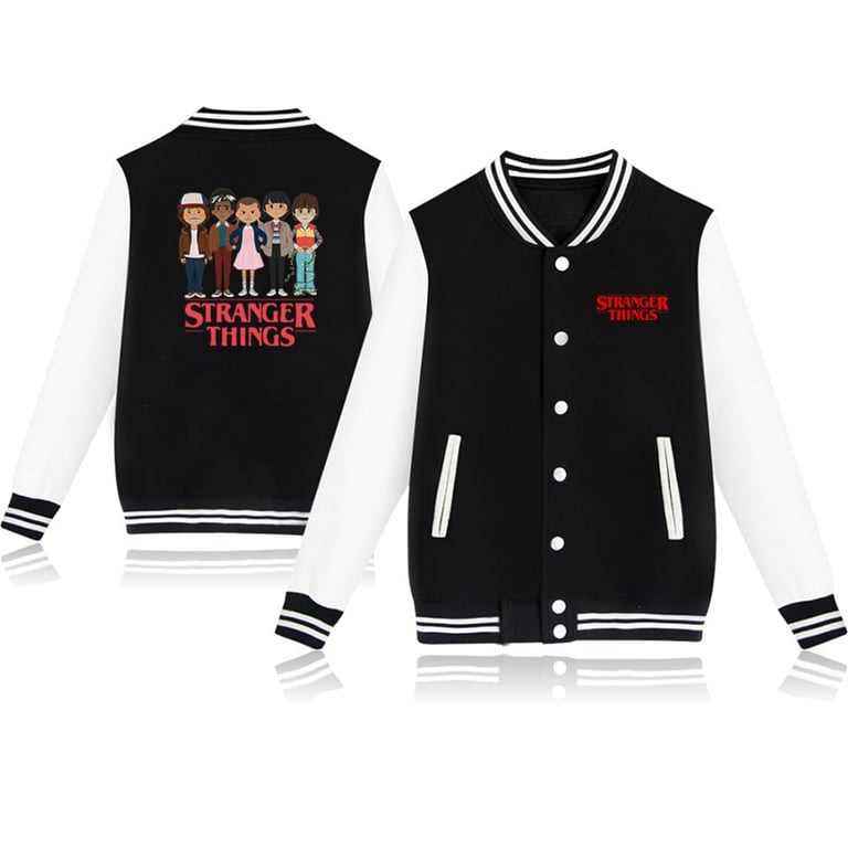 Sudadera infantil de béisbol con estampado de Stranger Things – negra
