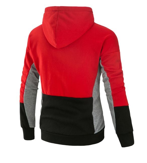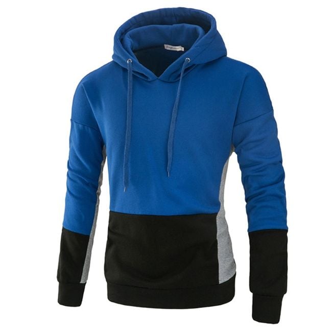 Los caballeros seguramente estarán encantados de dar la bienvenida a esta interesante sudadera de tres colores con capucha en su armario.
