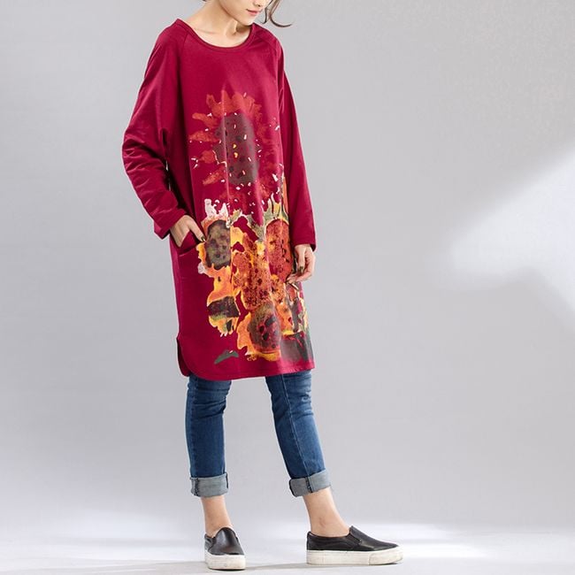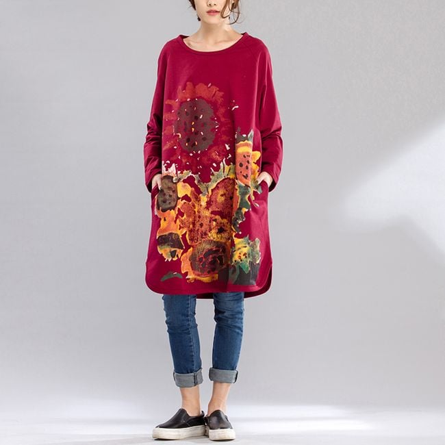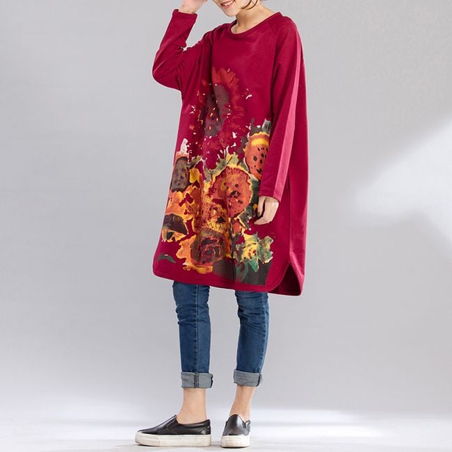 Sudadera larga con estampado de girasoles - 3 colores
