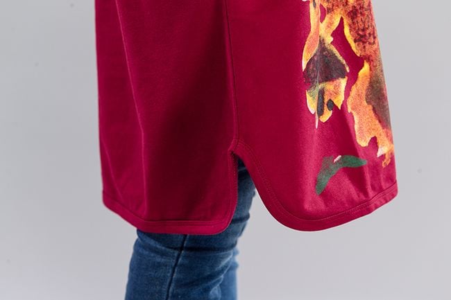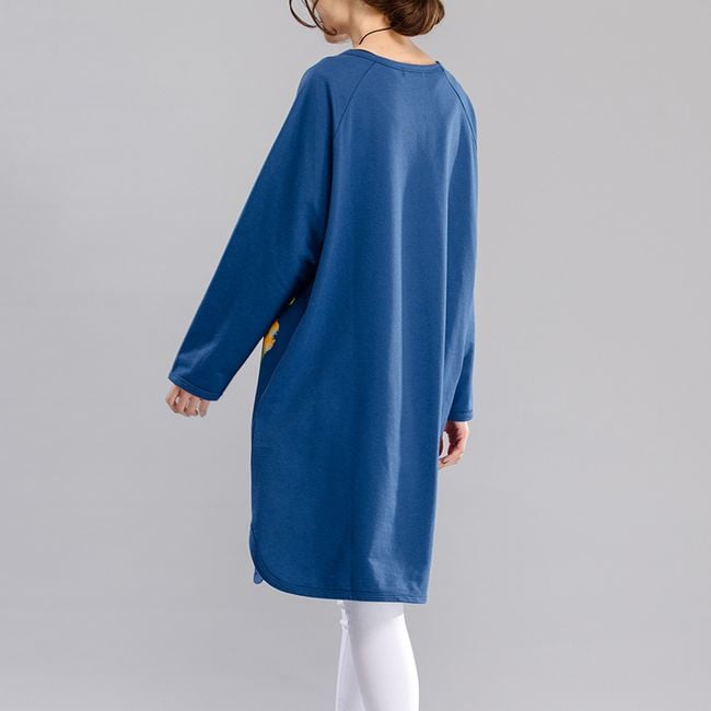 La sudadera se puede llevar también como vestido. La sudadera tiene un motivo de girasoles y es cómoda.
