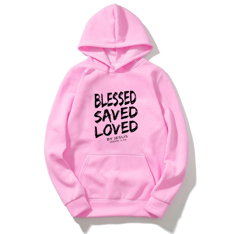 Sudadera moderna para mujer con capucha Blessed Saved Loved.