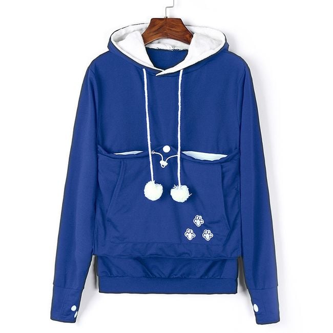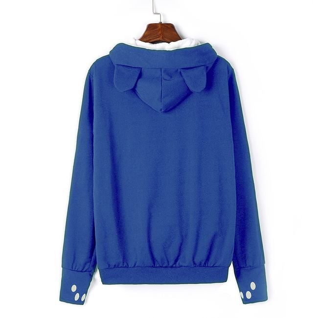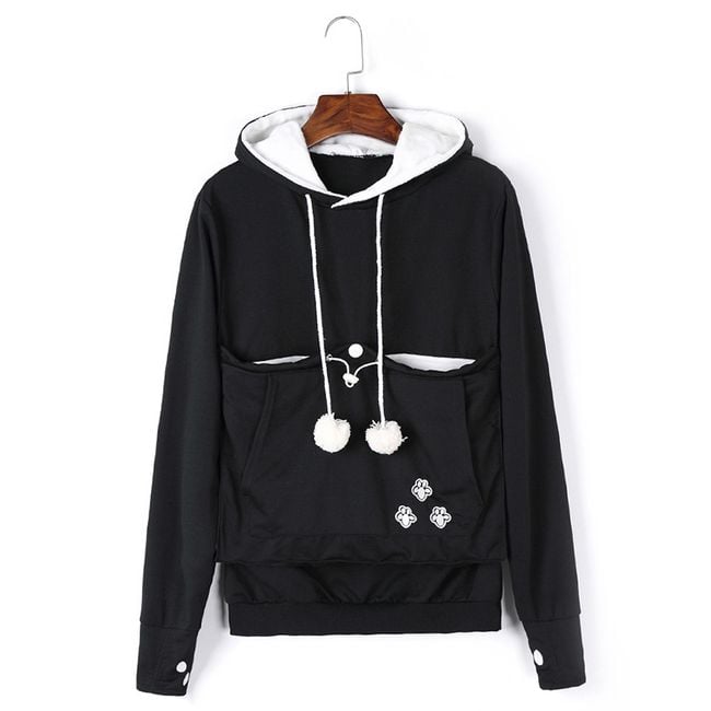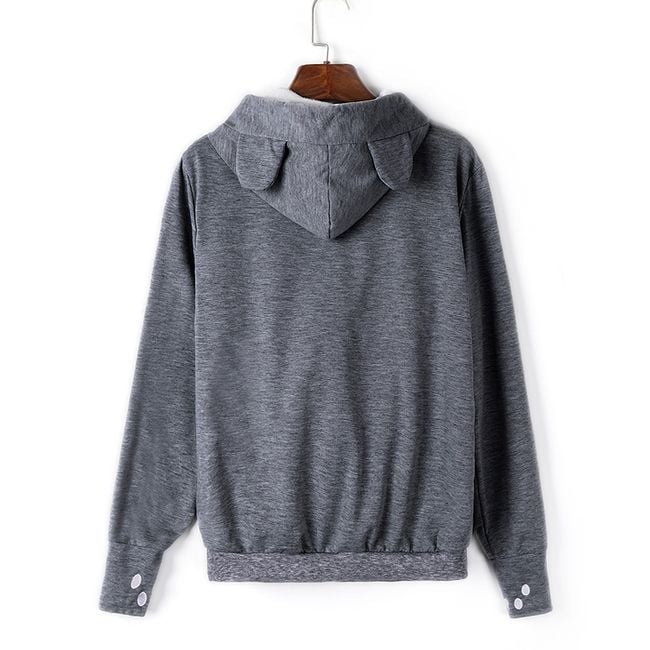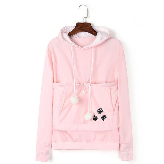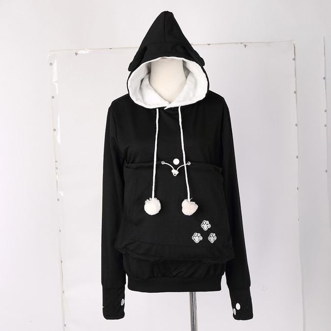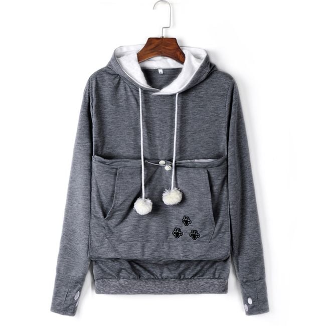 La sudadera para mujer cuenta con un gran bolsillo tipo canguro con estampado de patas de gato, capucha acolchada con orejitas y largas cintas con pompones. La sudadera está hecha de un material muy agradable y está disponible en 4 variantes de color.