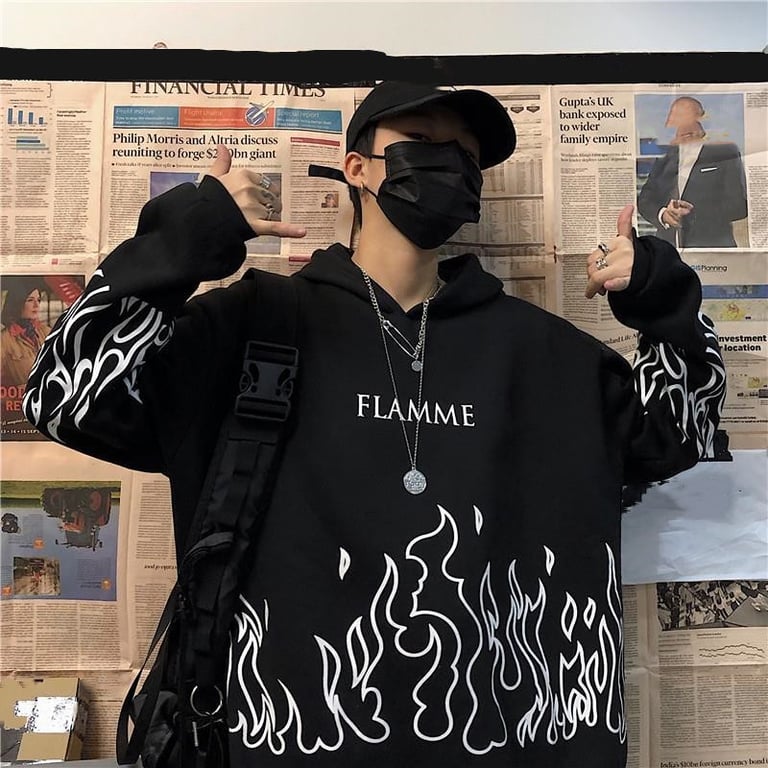 Sudadera unisex oversize con estampado de llamas