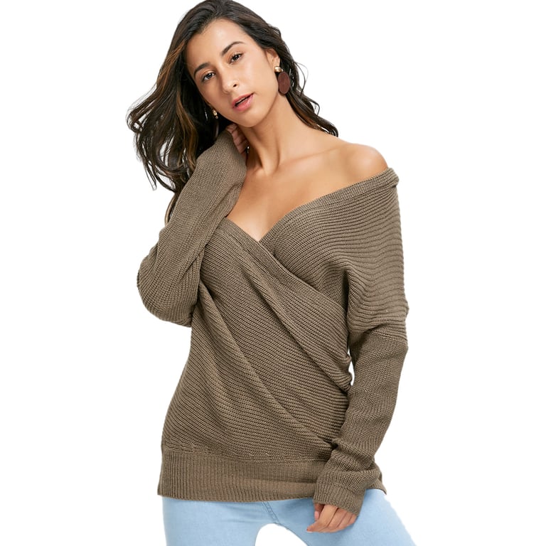 Suéter elegante para mujer con mangas largas y escote en V profundo. Ideal para la primavera o el otoño.