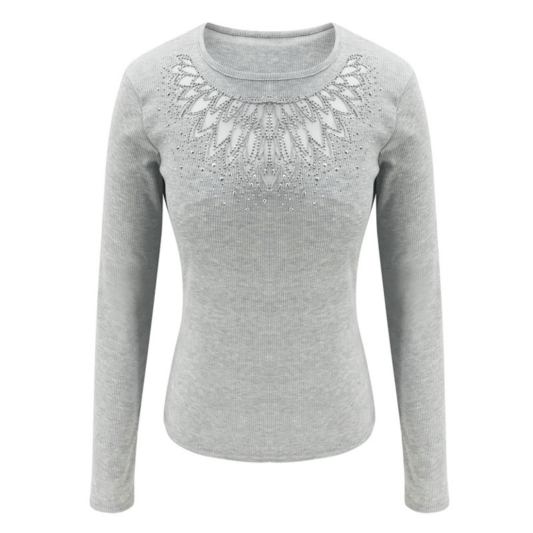 • Etiquetas: Suéter de mujer, suéter con piedras, brillante, suéter con escote, escote transparente, encaje, elegante