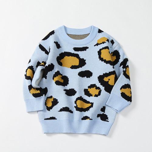 Hermoso suéter infantil de manga larga con un patrón de leopardo. Está disponible en tres colores diferentes.