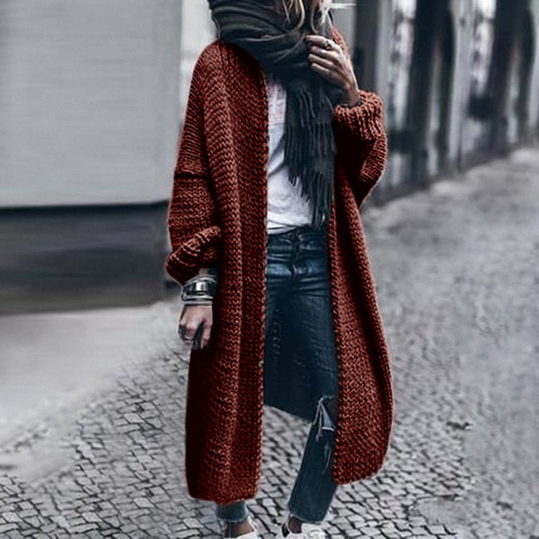 Las posibilidades son infinitas. Los suéteres largos para mujer están simplemente “de moda”.