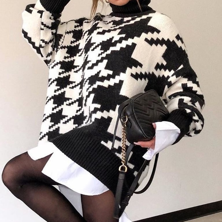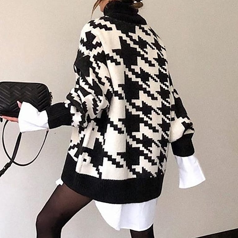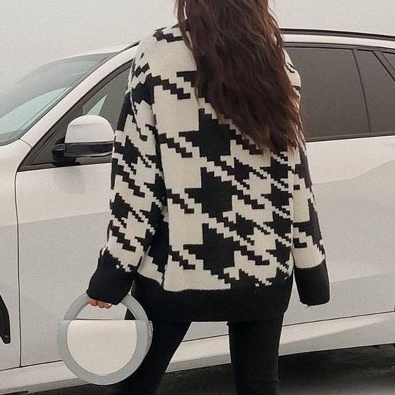 • Gracias a su estampado geométrico de houndstooth, este suéter es retro y casual, y se puede combinar fácilmente con pantalones y una chaqueta
