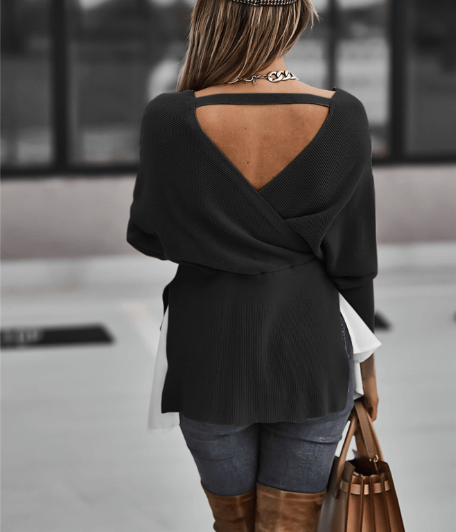• Etiquetas: suéter de mujer, suéter, ligero, escote en V, manga larga, escote en la espalda