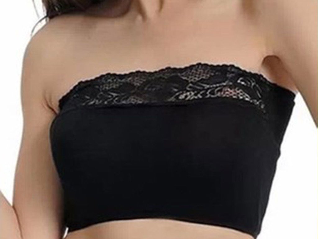 Elegante sujetador bandeau de fibra de bambú con borde de encaje. Una talla universal (circunferencia del pecho 56-84 cm) Color negro y blanco disponible.