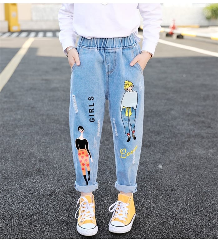 Super vaqueros con imágenes y textos para chicas.