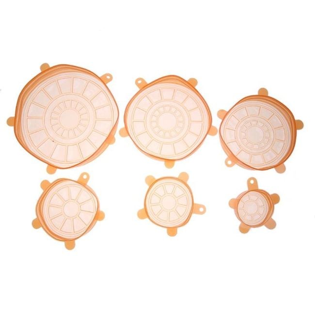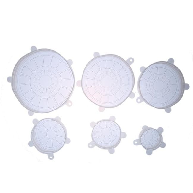 Las tapas están hechas de un material de silicona resistente pero flexible, que se adapta fácilmente a cada uno de sus recipientes.