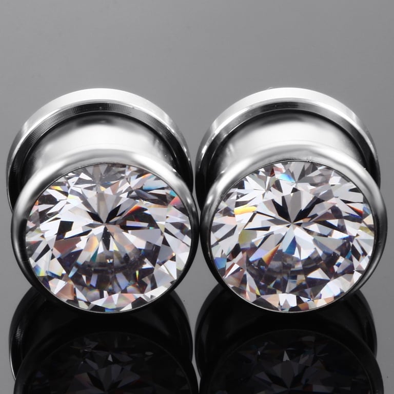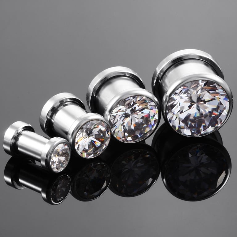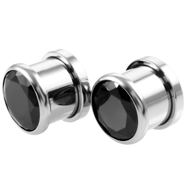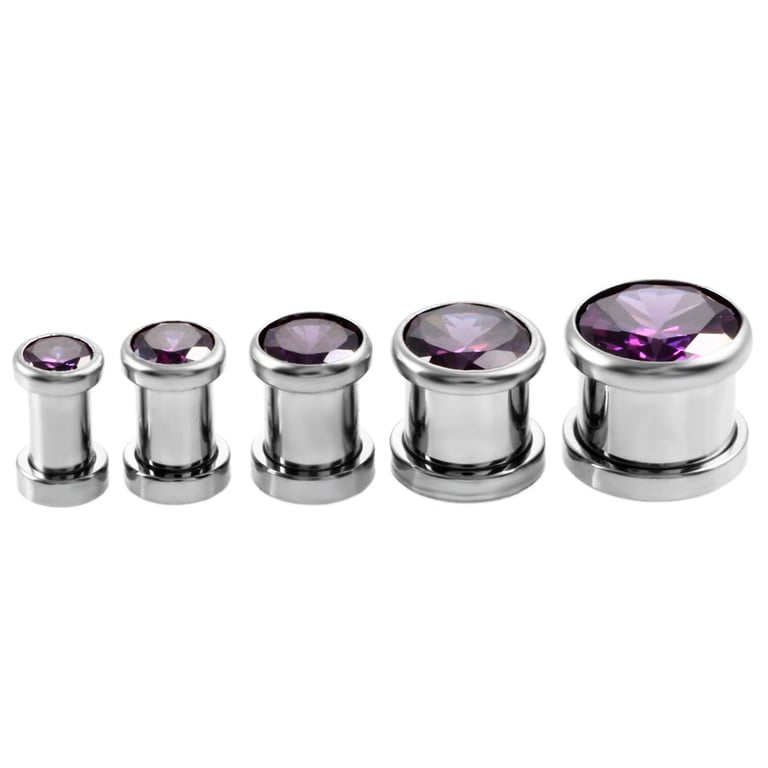 Tapón de acero roscado con piedras de colores.
