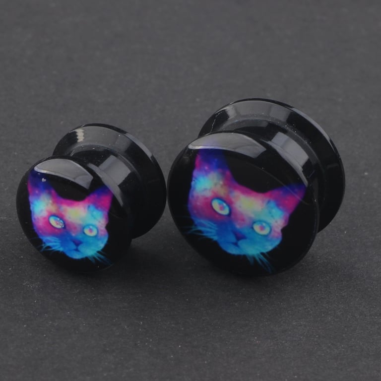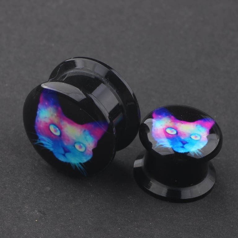 Tapón de acrílico con un gato holográfico.