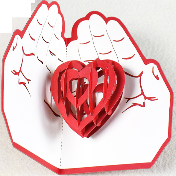 Tarjeta de San Valentín en 3D – Corazón en las manos