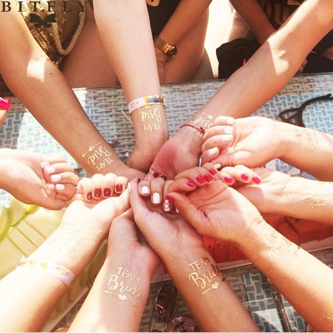 La despedida de soltera no está completa sin accesorios originales. El equipo de la novia puede marcarse con un tatuaje temporal.