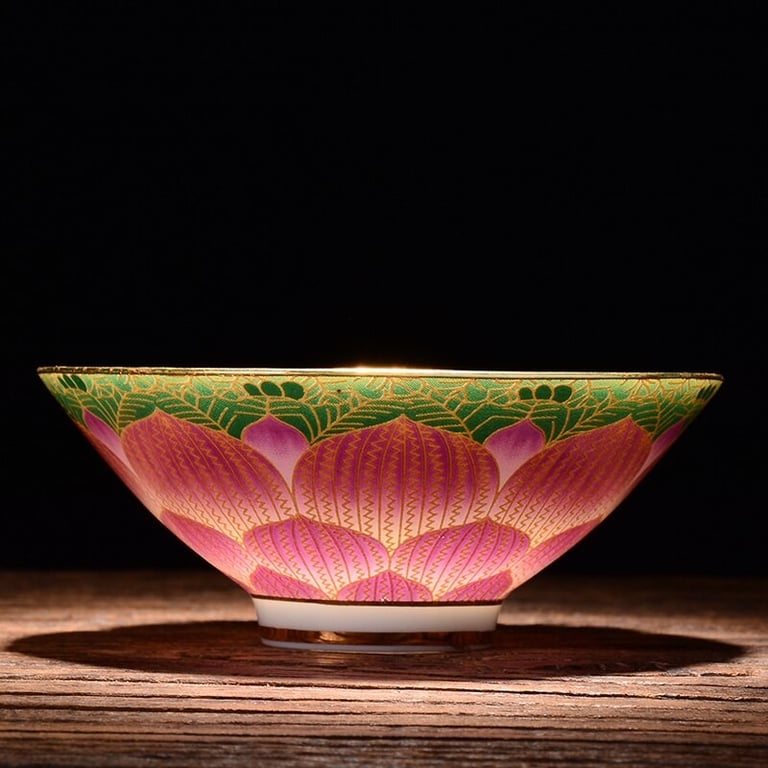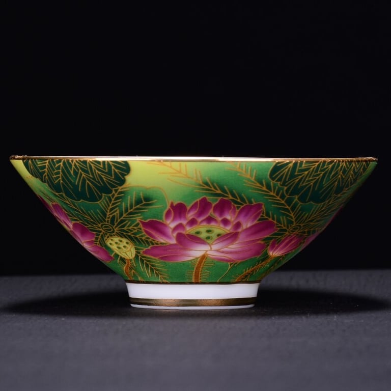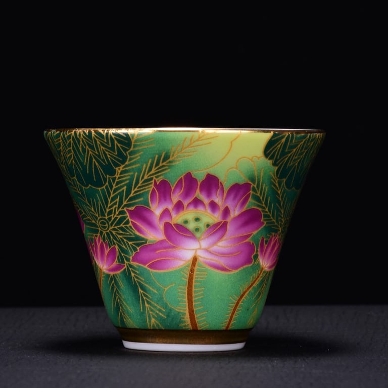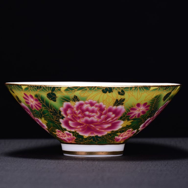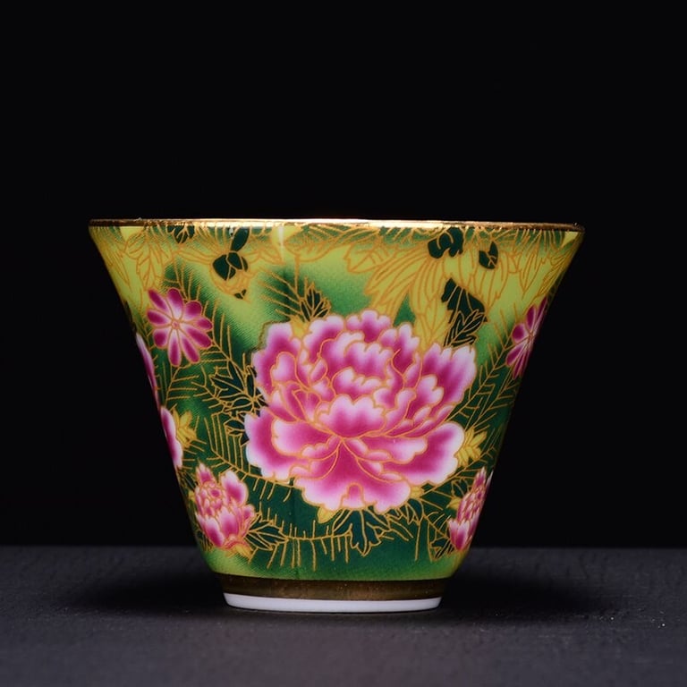 Taza de estilo chino decorada con flores.
