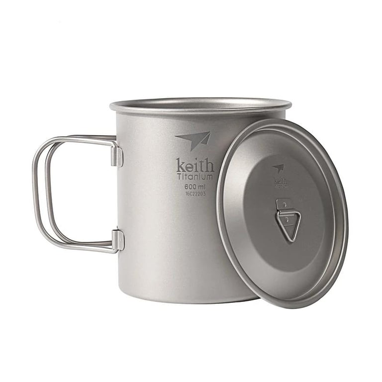 Taza de titan ultraligera original con tapa. Ideal para viajar, perfecto como regalo.
