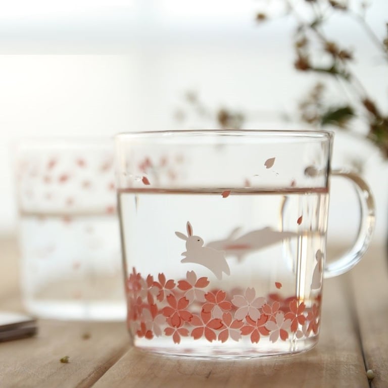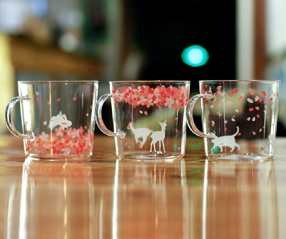 Taza de vidrio con flores