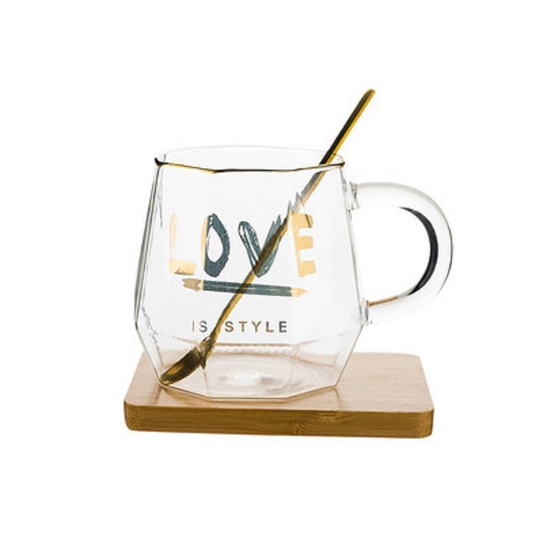 Taza de vidrio con inscripción
