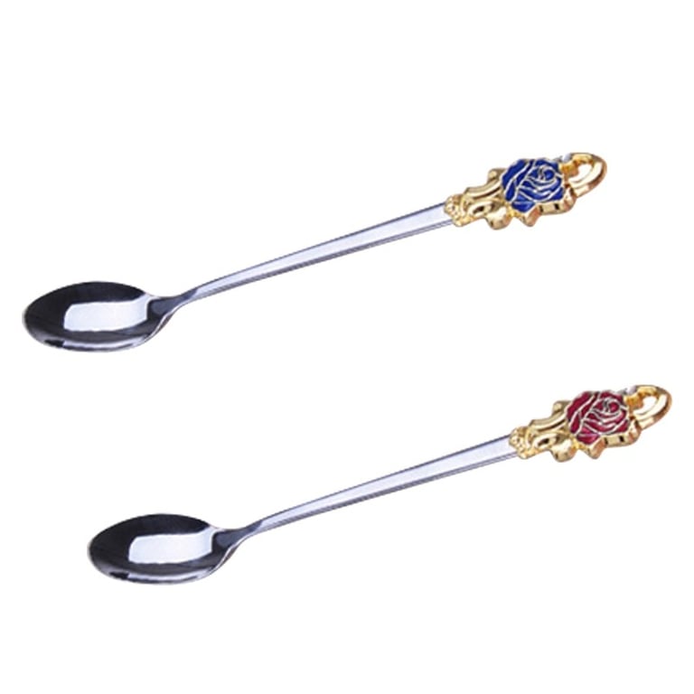 Taza de vidrio y cuchara con rosas