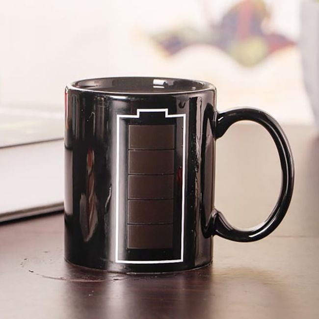 Taza que cambia según la temperatura de la bebida - batería