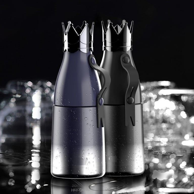 Termo con una corona decorativa en la tapa - sirve como una pequeña taza con asa.
