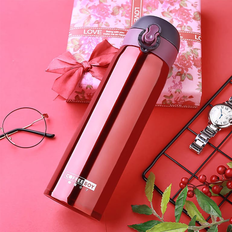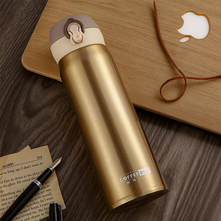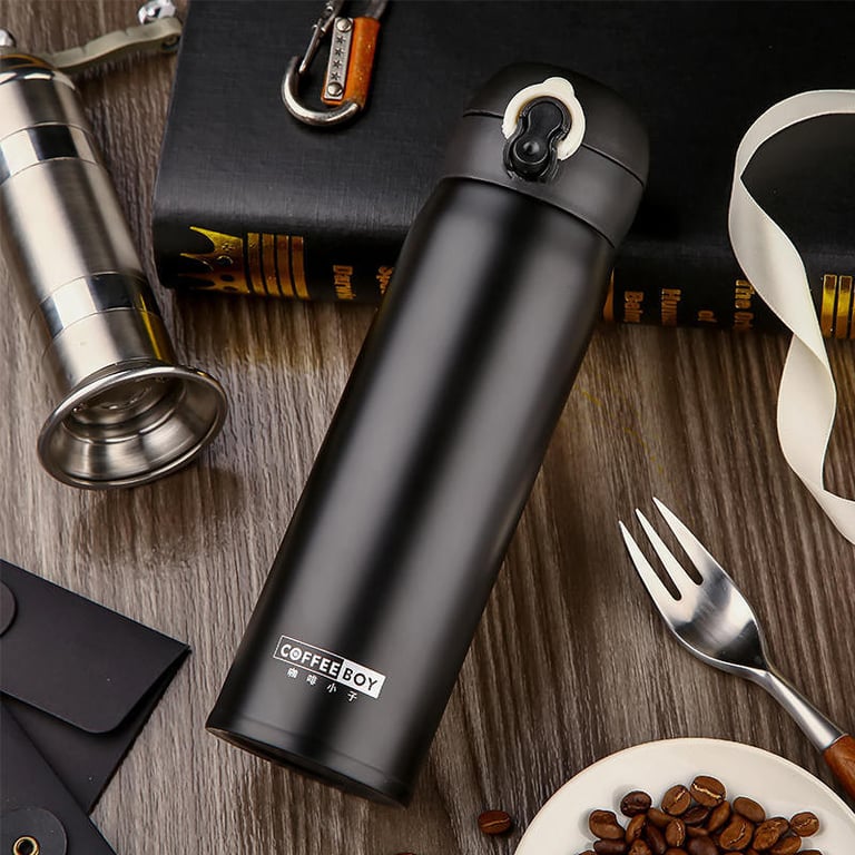 Práctica termos con tapa de seguridad. La tapa se puede usar como taza y tiene un gancho adecuado, por ejemplo, para colgar en una mochila. Disponible en varios colores.