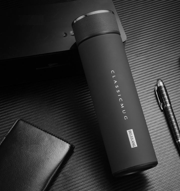 Termo inteligente con termómetro integrado en la tapa.